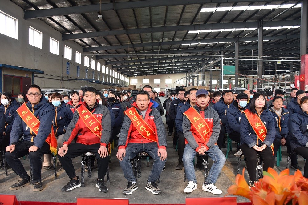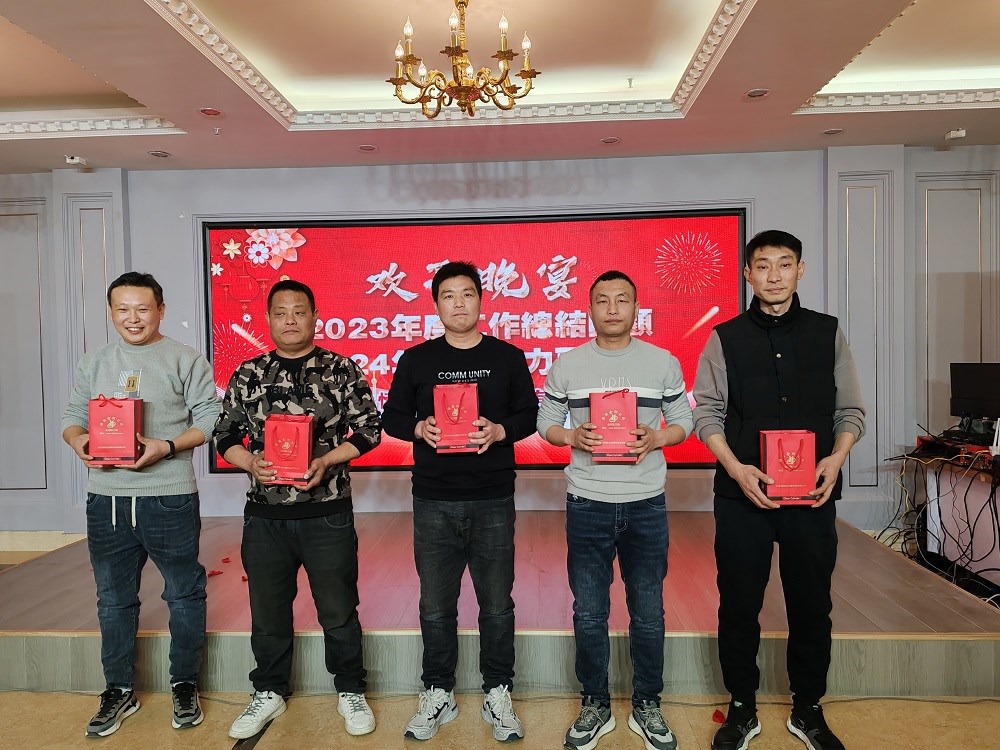 首先由行政辦宣讀會場紀(jì)律,然后回顧2023年公司發(fā)展歷程,總結(jié)過去一年我們?nèi)〉玫某煽兣c不足之處,展望美好2024。接下來是激動人心的頒獎表彰時刻,五位年度優(yōu)秀員工脫穎而出,由生產(chǎn)副總劉海峰與銷售副總郭文斌為他們頒獎,公司總經(jīng)理、黨支部書記陳文通上臺與其合影留念。