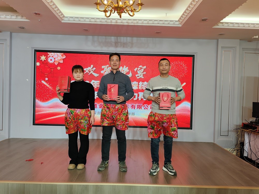 總結(jié)大會在洪亮的“金河發(fā)展,我的責(zé)任”中結(jié)束,陳總與主席臺高管中干祝愿所有金河員工及家人,身體健康,家庭幸福,龍年大吉,并深鞠一躬!春節(jié)禮品也由管理者發(fā)放到了每個員工手中,從員工臉上洋溢的笑容可以看到美好的2024年在向我們揮手。