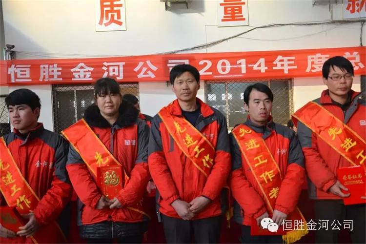 2015年2月8日下午,召開恒勝金河2014年度總結(jié)表彰大會(huì),伴隨著入場(chǎng)音樂(lè),全體員工整齊有序進(jìn)入會(huì)場(chǎng),合唱〈咱金河的人〉。公司高管、中干在主席臺(tái)就座,行政辦主任做2014年度工作總結(jié)報(bào)告。
